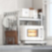 Køkkenhylde med indbygget stikkontakt og mikrobølgehylde - Brun/hvid