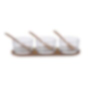 Serveringsbakke med 3 glasskåle og træskeer - komplet sæt til stilfuld borddækning