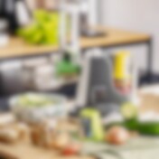 Køkkenmaskiner, der tilbyder flere funktioner og kan udstyres med en række forskellige tilbehør, er populære helte i køkkenet. De hjælper dig med at hakke, rive, piske og blande, og de tager også mindre plads i skabet, da du ikke behøver flere redskaber. Vi tilbyder forskellige typer blendere, mixere og foodprocessorer fra kendte producenter.