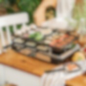 Raclette - Elektrisk bordgrill med dobbelt grillplade og 8 raclettepander
