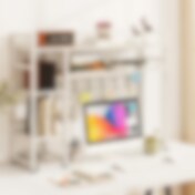 Hvid skrivebordshylde - skærmstativ, skrivebordsorganisering og opbevaringshylde