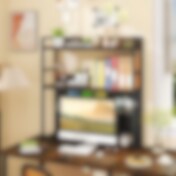 Skrivebordshylde / skærmhylde / reol til skrivebord i brun/sort