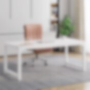 Moderne designskrivebord med robust metalramme - hvid / moderne skrivebord til hjemmekontoret / arbejdsbord med metalramme