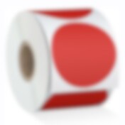 Etiketrulle med runde røde etiketter 50 mm - 600 etiketter pr. rulle