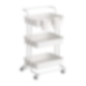 Vogn på hjul med 3 vasketøjskurve og praktisk hylde