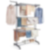 Sammenklappeligt tørrestativ med udtrækkelige bøjler og hjul