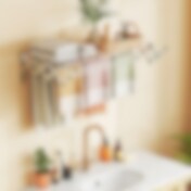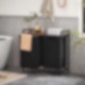Lille badeværelseshylde med to vasketøjskurve - 92 liter - Grå / Brun / Sort