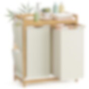 To-delt vasketøjskurv i bambus med 130 liter låg - Beige