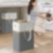 Vasketøjskurv med 2 rum og hylde - hvid/grå