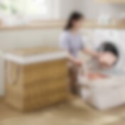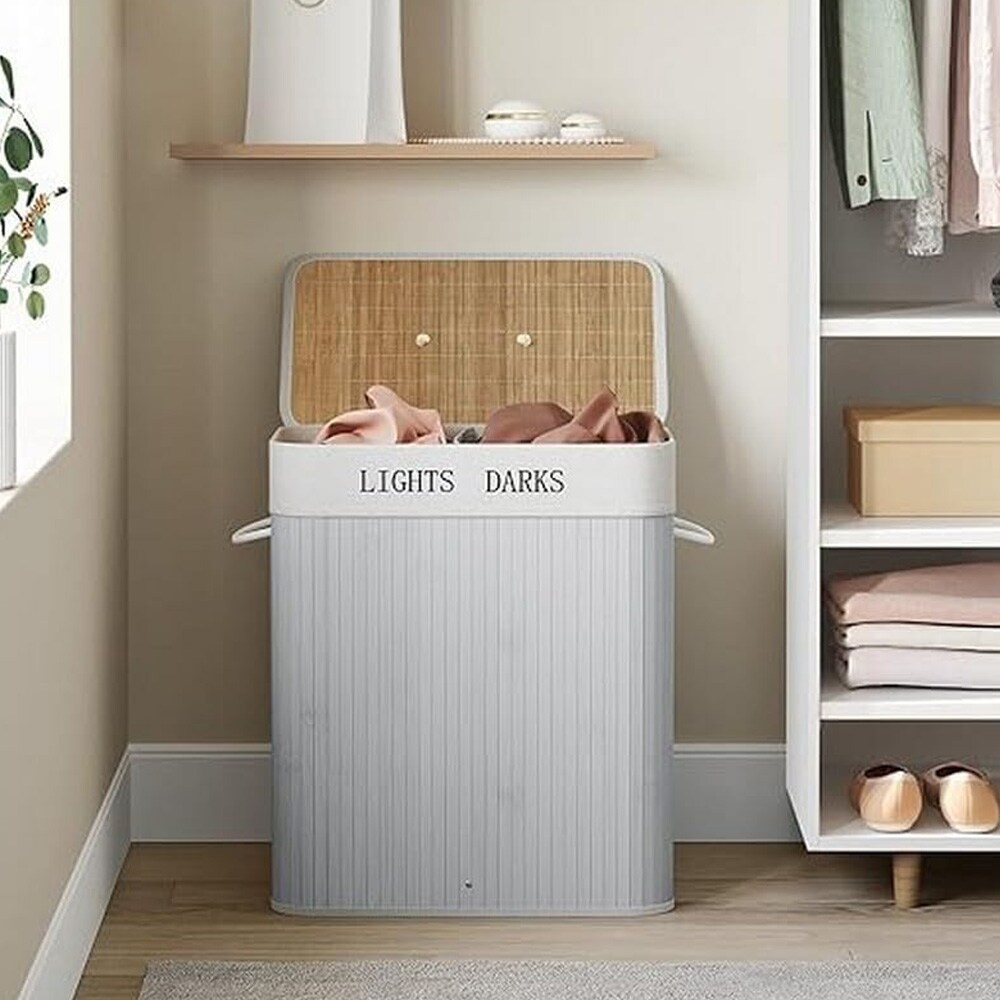 To-delt vasketøjskurv i bambus med 130 liter låg - Beige