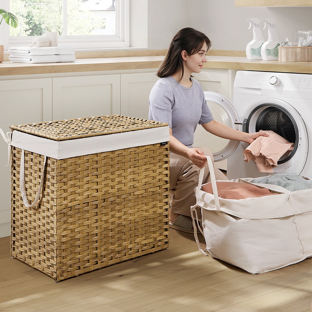 160 L vasketøjskurv med låg og to sektioner i rattan-design