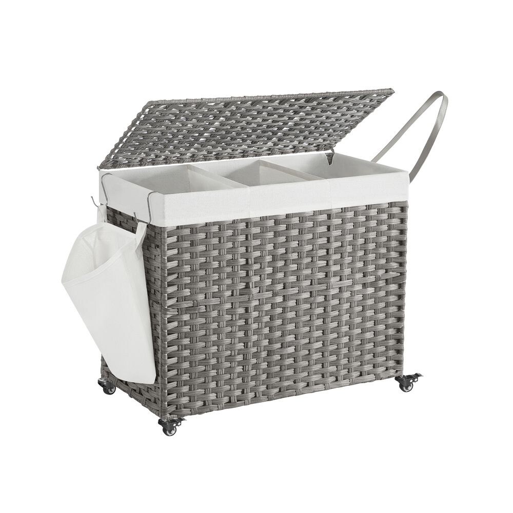 160 L vasketøjskurv med låg, hjul og tre rum - Grå