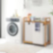 Vasketøjskurv i bambus med hylde og 2 aftagelige poser – Hvid/træ