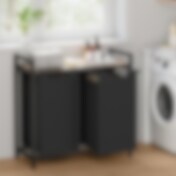 Vasketøjskurvvogn 73 x 33 x 92 cm med fire opbevaringsrum - Sort/Grå