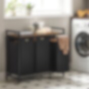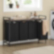 Vasketøjskurv med 3 udtrækkelige rum og træhylde – Sort