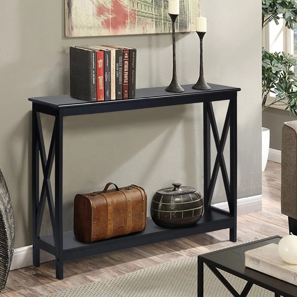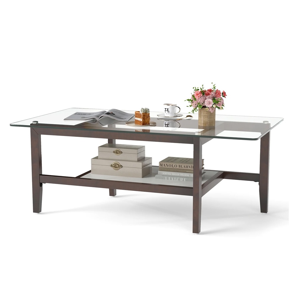 Sofabord med glasplade og nederste hylde - Brun