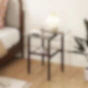 Sidebord med glasplade og nederste hylde i brun træfinish