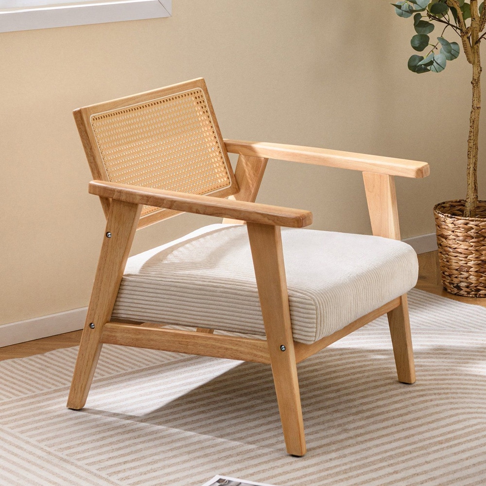 Lænestol med polstret sæde og ryglæn i kunstrotting