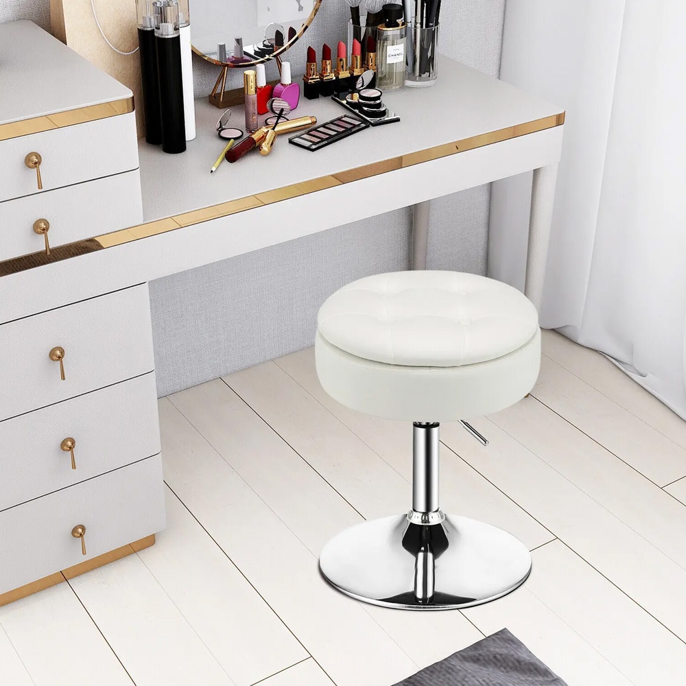 Justerbar skammel med drejeligt sæde og opbevaring – hvid