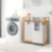 Vasketøjskurv i bambus med hylde og 2 aftagelige poser – Hvid/træ