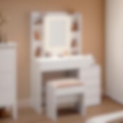 Frisørbord med skammel og LED-belysning - Hvid