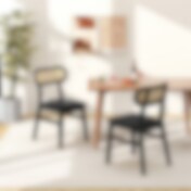 Sæt med 2 spisebordsstole i træ med ryg i rattan – sort