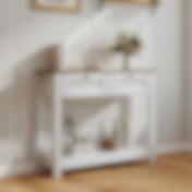 Konsolbord med 2 skuffer og hylde 106 cm - Hvid/træ