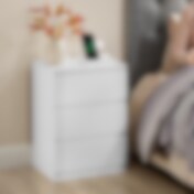 Sengebord med 3 skuffer og strøm- samt USB-stik – Hvid