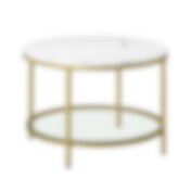 Rundt sofabord i marmorlook med glasplade nedenunder - hvid/guld