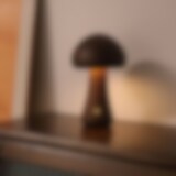 Bordlampe i valnød med justerbar lysstyrke og svampedesign