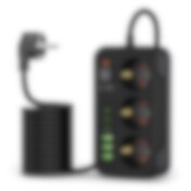 Tech-Protect strømskinne med 3x 240V strømudtag + 3xUSB-A + 3xUSB-C - Svart
