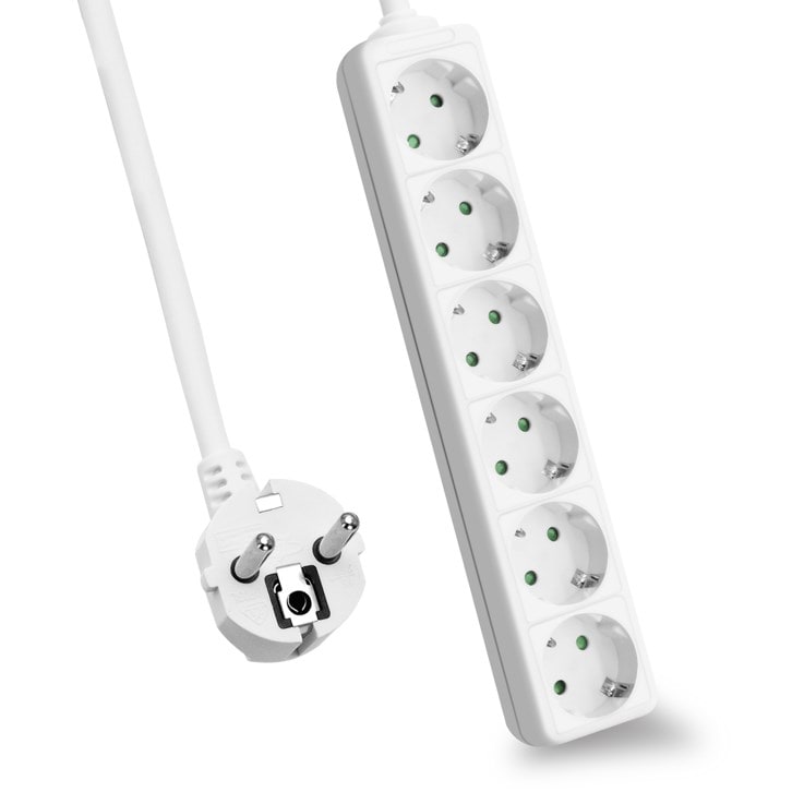 helos-stikkontakt CLASSIC, 6-vejs, hvid, 1,5 m, uden afbryder