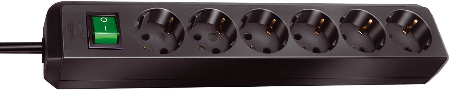Brennenstuhl Eco-Line med afbryder 6-vejs sort 3,0 m