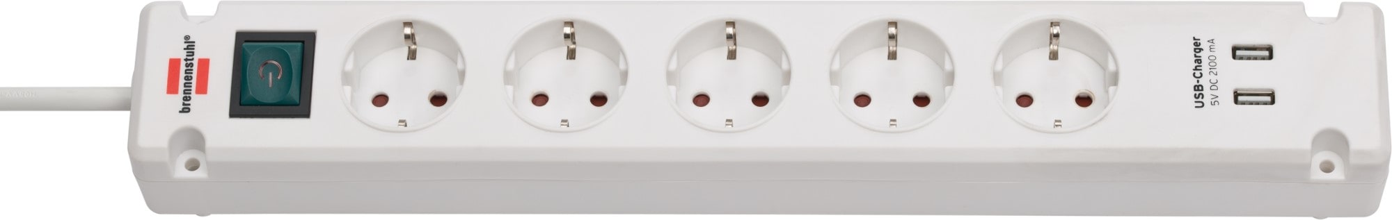 Brennenstuhl Bremounta stikkontakt 5-vejs 2x USB-A hvid 3m med afbryder