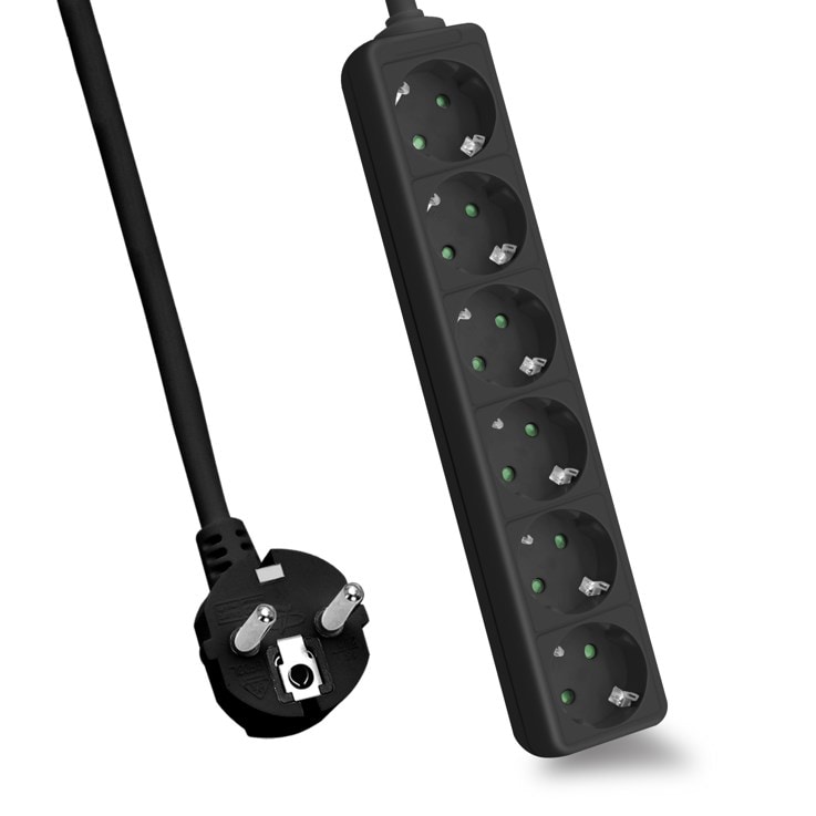 helos-stikkontakt CLASSIC, 6-vejs, sort, 1,5 m, uden afbryder