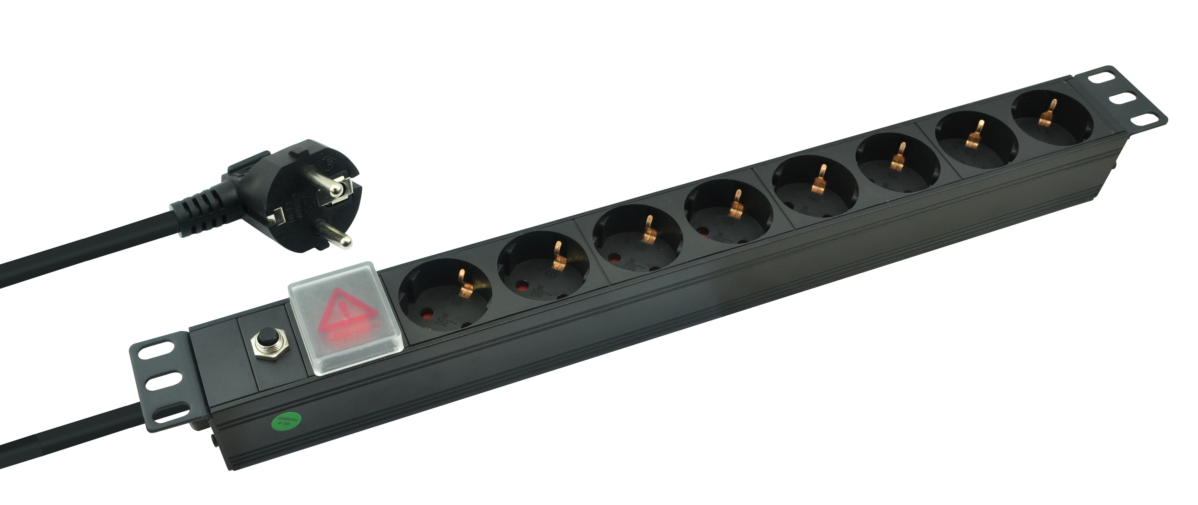 "helos 19"" PROFESSIONAL stikkontakt, 8-vejs, sort, 2,0 m, med afbryder"