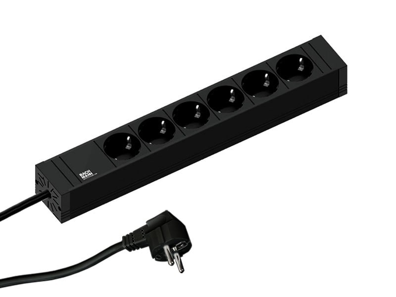 Bachmann stikdåse CONNECT LINE 6-vejs, sort, 2,0 m, uden afbryder