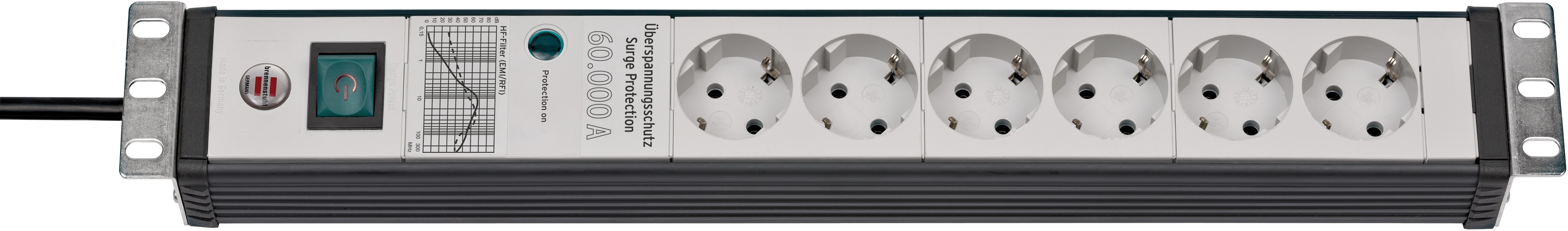 "Brennenstuhl 19"" ÜSS 60.000A Premium-Line 6-gang sort/lysegrå, 3m"