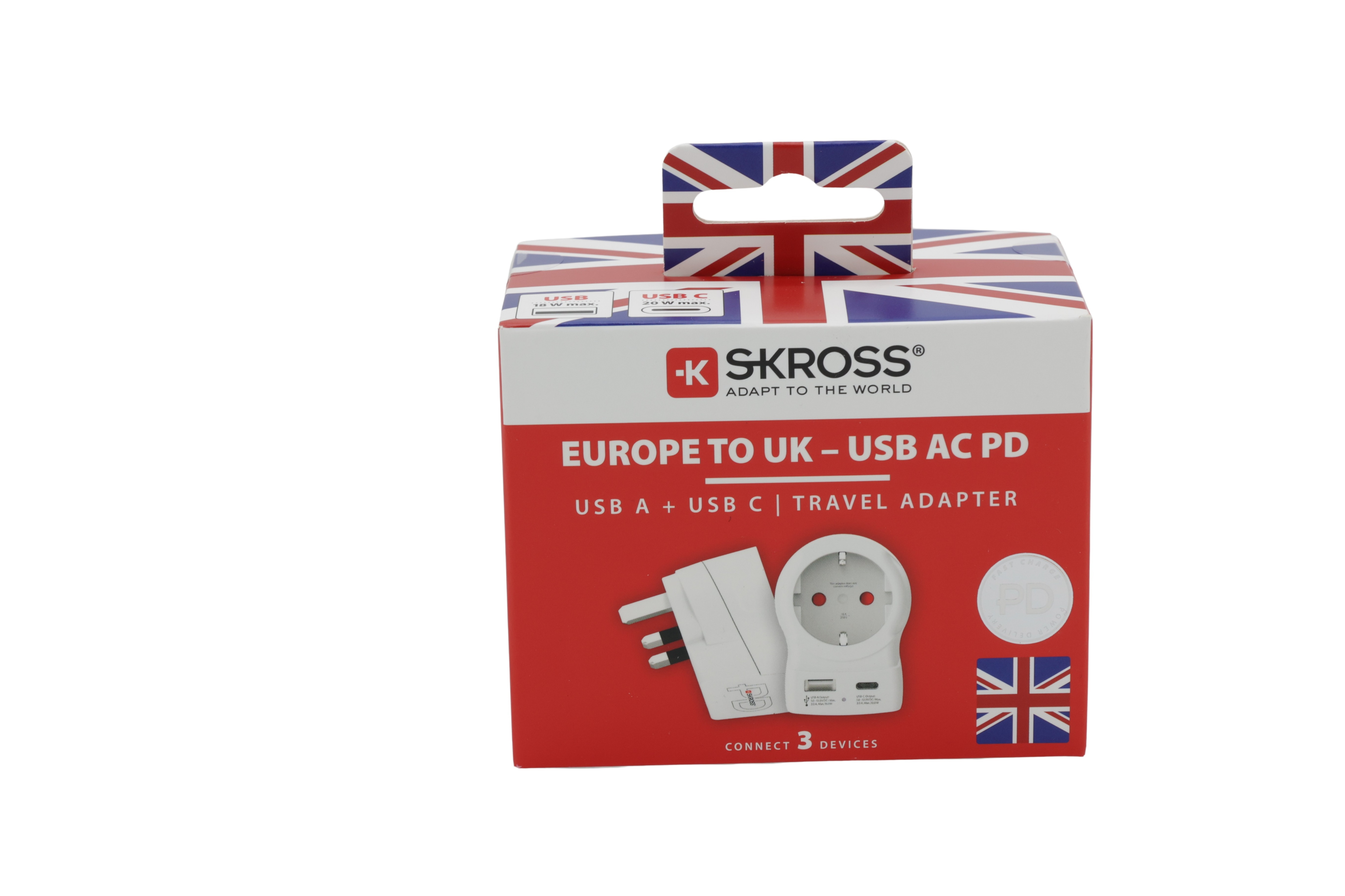 SKROSS Landesstik Europa til UK USB AC20PD hvid