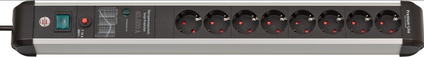 aluminium, 3m, Brennenstuhl ÜSS Premium-Protect-Line 60.000A 8-vejs