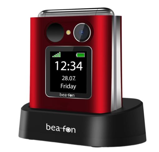 Beafon Fold10 LTE - 4G, Silver Line, flip-mobiltelefon med store knapper, rød-sølv