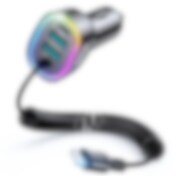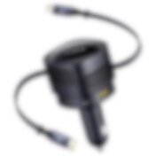 AutoSky 4-i-1 biloplader med udtrækkelige Lightning- og USB-C-kabler