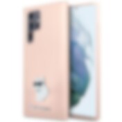 Karl Lagerfeld Silikone Choupette Metal Pin etui til Samsung Galaxy S23 Ultra - pink