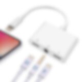 Høretelefon- og ladeadapter 2 x Lightning + 3,5mm til Lightning