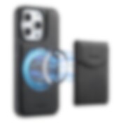 Kunstlæderetui med magnetisk kortholder til iPhone 15 Pro Max med aftagelig holder - Sort