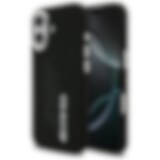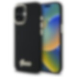 Guess Silikone Script Metal Logo & Frame-etui til iPhone 16 Plus - Sort