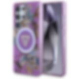 Guess Glitter Flowers Triangle Buttons MagSafe-etui til Samsung Galaxy S25 Ultra - lilla
