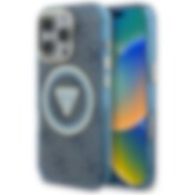 Guess IML Metal Glitter 4G Circle Triangle MagSafe-etui til iPhone 16 Pro Max - Blå