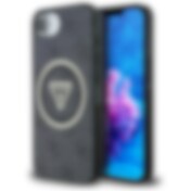 Guess IML Metal Glitter 4G Circle Triangle MagSafe-etui til iPhone 16e - Sort