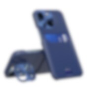 Leather Stand Case for iPhone 14 cover card wallet with stand blue